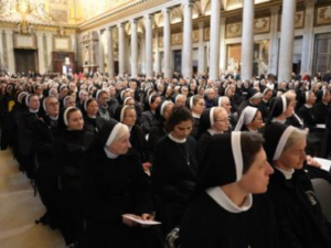 opening remarks, Sr. Angela Marie Mazzeo referenced Psalm 145, stating that “the Lord has indeed done great things” during the 150 years of the Congregation’s history. Her message also looked ahead: “This is the beginning of a new stage — undertaken with the banner and the cross, in a spirit of trust and readiness to continue serving the Church.”